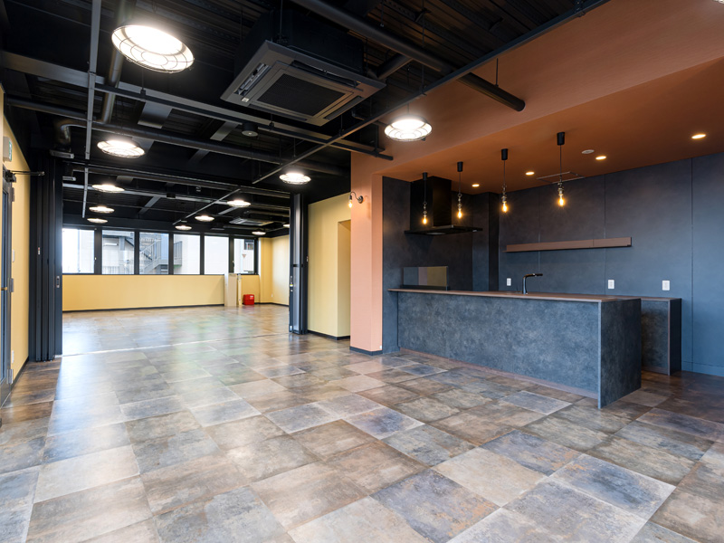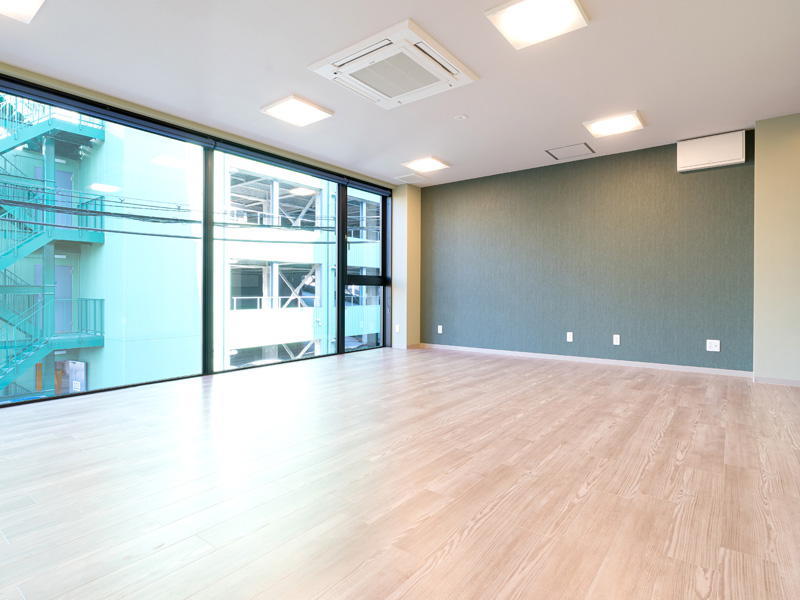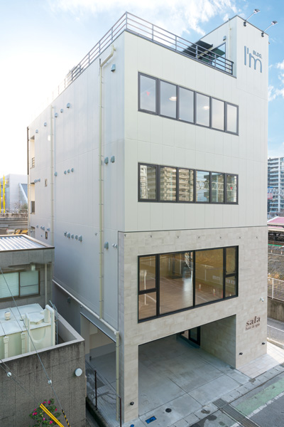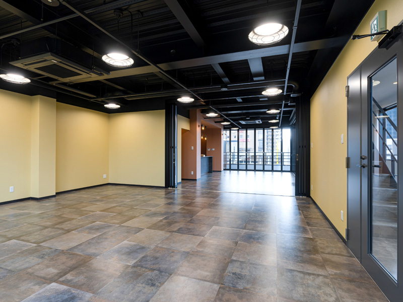 1・2階が店舗、3階が事務所、4階がフリールーム・テラス、5階はサンルーム、屋上テラスになっております。建物からはJR南草津駅が見えており、電車が3階事務所と同じ目線にある建物です。